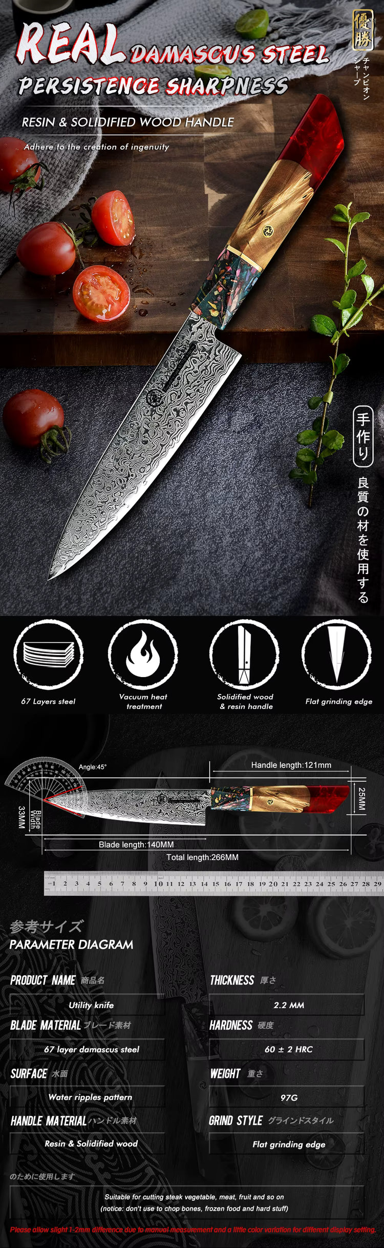 Verleihen Sie Ihrer Küche Präzision und Stil mit dem Grandsharp VG10 Damast-Universalmesser (14 cm) . Dank seiner 67-lagigen Damaststahlklinge und des VG10-Kerns bietet dieses Messer dauerhafte Schärfe, erstklassige Haltbarkeit und Eleganz.