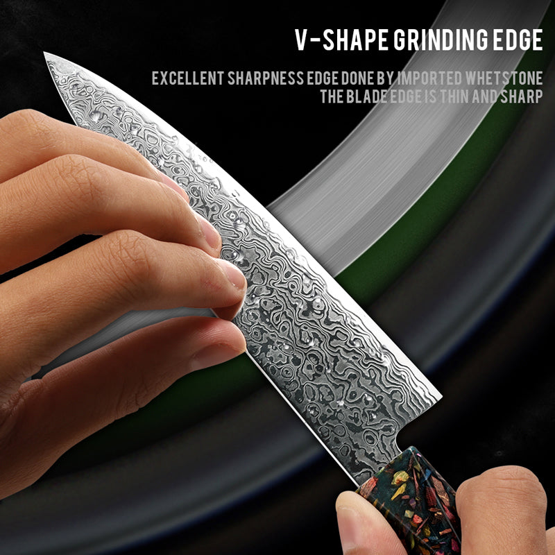 Verleihen Sie Ihrer Küche Präzision und Stil mit dem Grandsharp VG10 Damast-Universalmesser (14 cm) . Dank seiner 67-lagigen Damaststahlklinge und des VG10-Kerns bietet dieses Messer dauerhafte Schärfe, erstklassige Haltbarkeit und Eleganz.